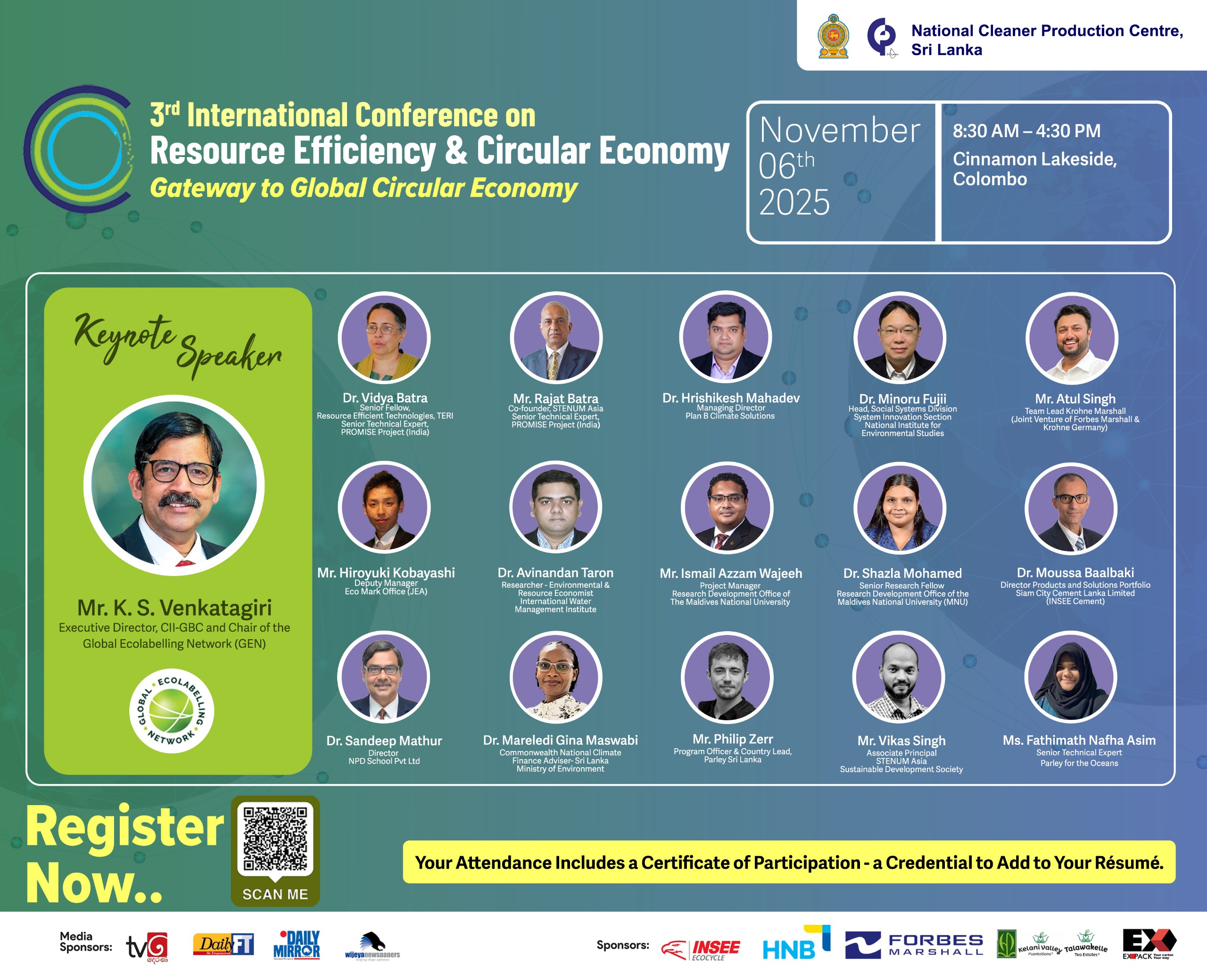 Join us for a full day of insightful discussions, global expertise, and transformative ideas that will shape the future of resource efficiency and circular economy in Sri Lanka and beyond. Click the link below to register.
